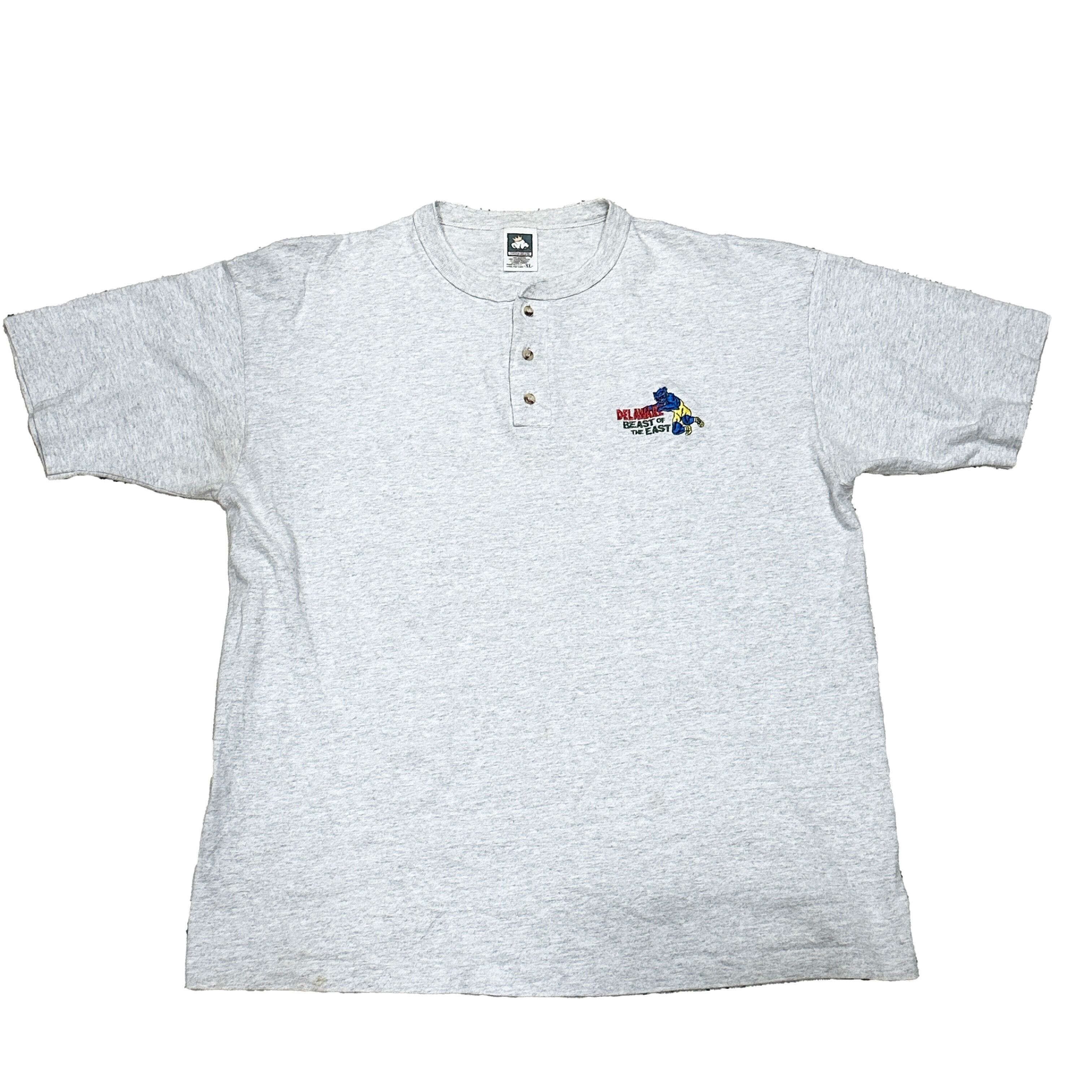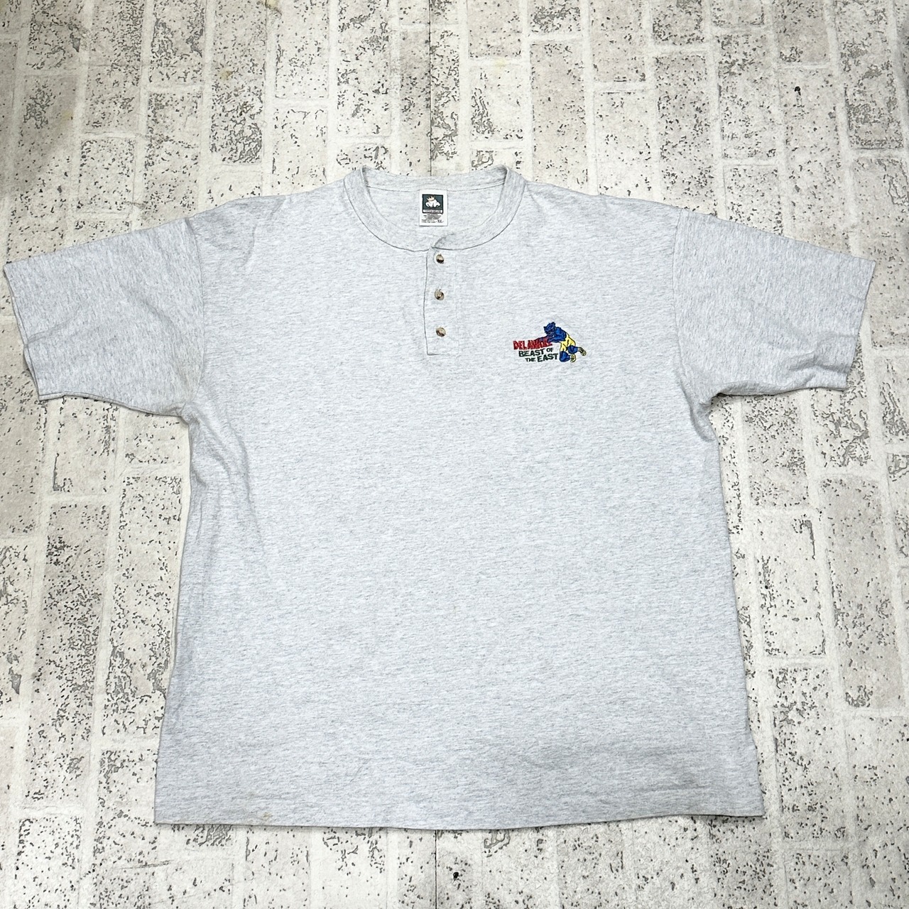 90s|cotton deluxe|刺繍|ヘンリーネック|tシャツ|古着|XL