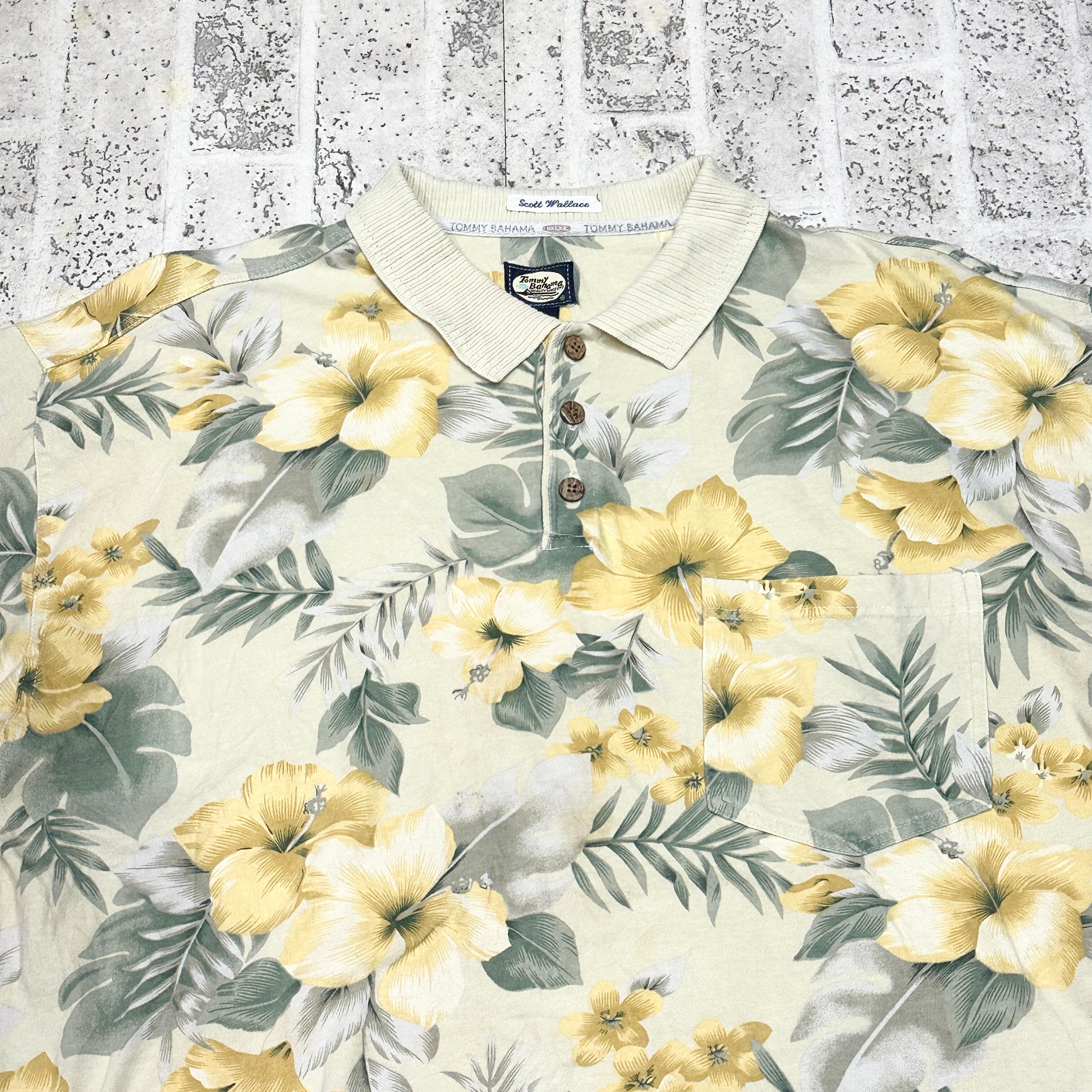 90s|TommyBahama|アロハ|ポロシャツ|ヘンリーネック|ボタニカル|古着|XL