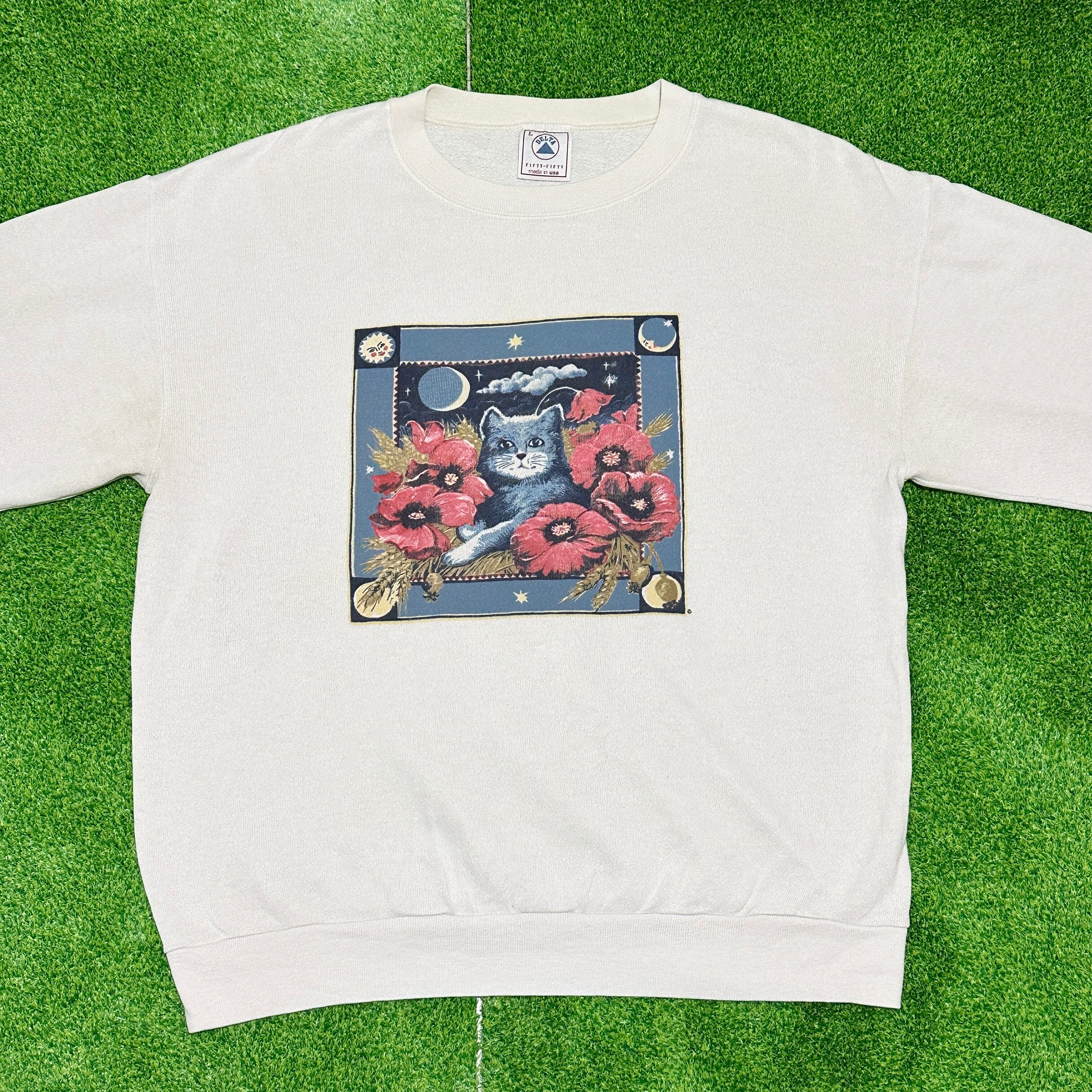 90s DELTA animal print sweat【size L】1990年代 デルタ アニマルプリント 猫 スウェット vintage ヴィンテージ 古着